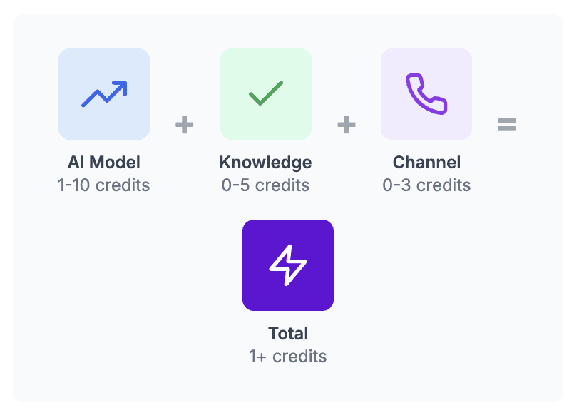 We believe you shouldn't pay for power you don't need. Our unique credit system adapts to every single interaction. Start with a low base cost and only spend extra credits when you activate advanced capabilities—like deep knowledge retrieval, external channels, or high-reasoning AI models.